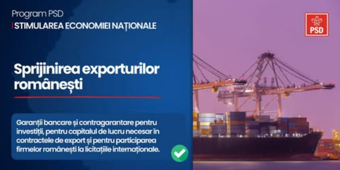 Tema a fost abordată și de ministrul PSD, Ciprian Șerban, care a subliniat importanța sprijinirii firmelor românești active pe piețele externe și a prezentat o serie de măsuri considerate necesare pentru relansarea economică. Potrivit acestuia, exporturile joacă un rol esențial în dezvoltarea economiei naționale, prin contribuția la crearea de locuri de muncă și la creșterea competitivității companiilor românești.