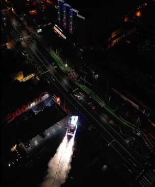 Sania lui Moș Crăciun călătorește deasupra orașului Piatra Neamț, în fiecare seară
